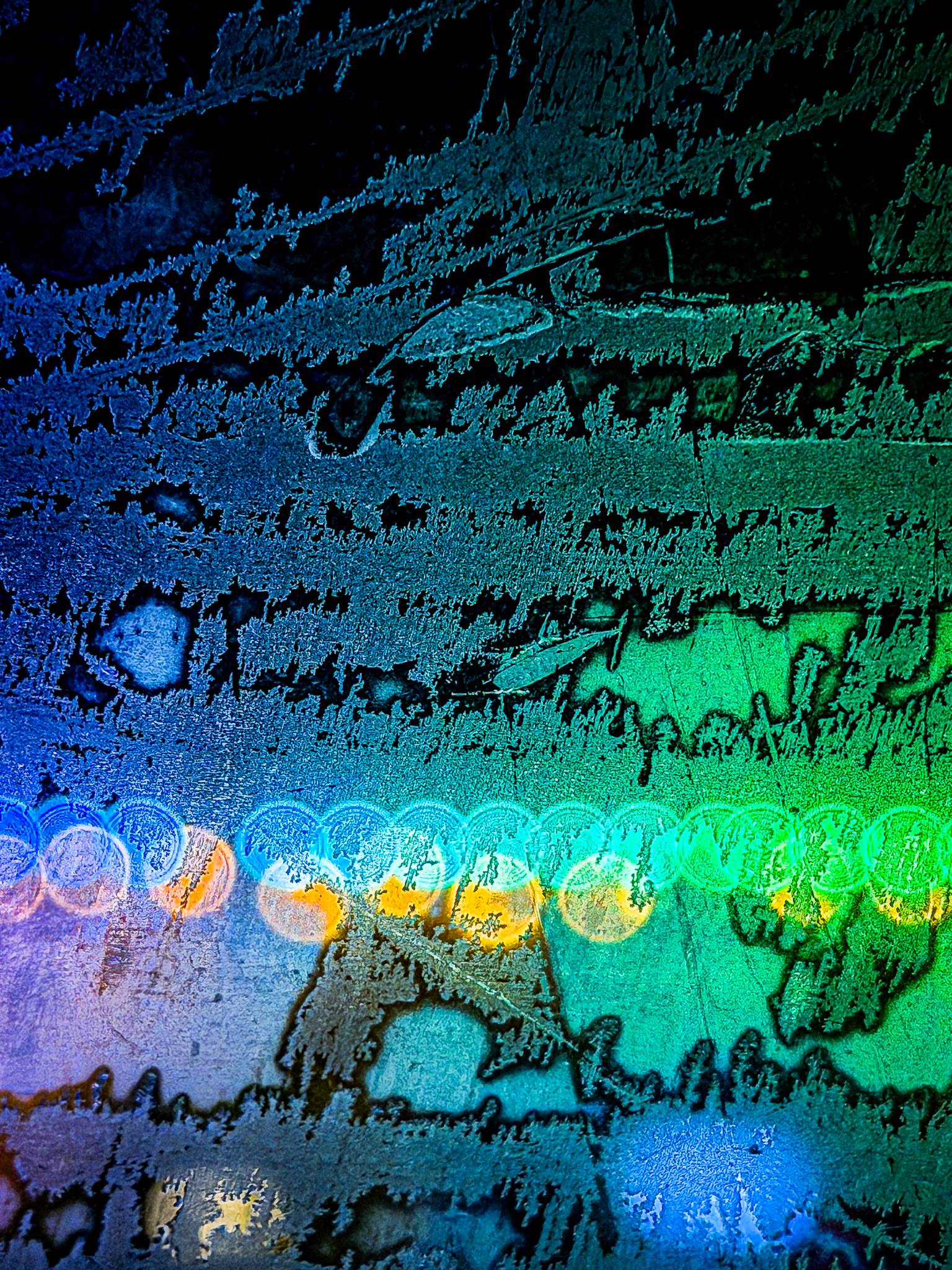 To focus on the frost and not the lights, tap your iPhone camera screen where there is frost. The camera will "catch" that spot to focus on, forcing the lights in the background to go blurry. This is how you create that gorgeous bokeh look of light in the background.
