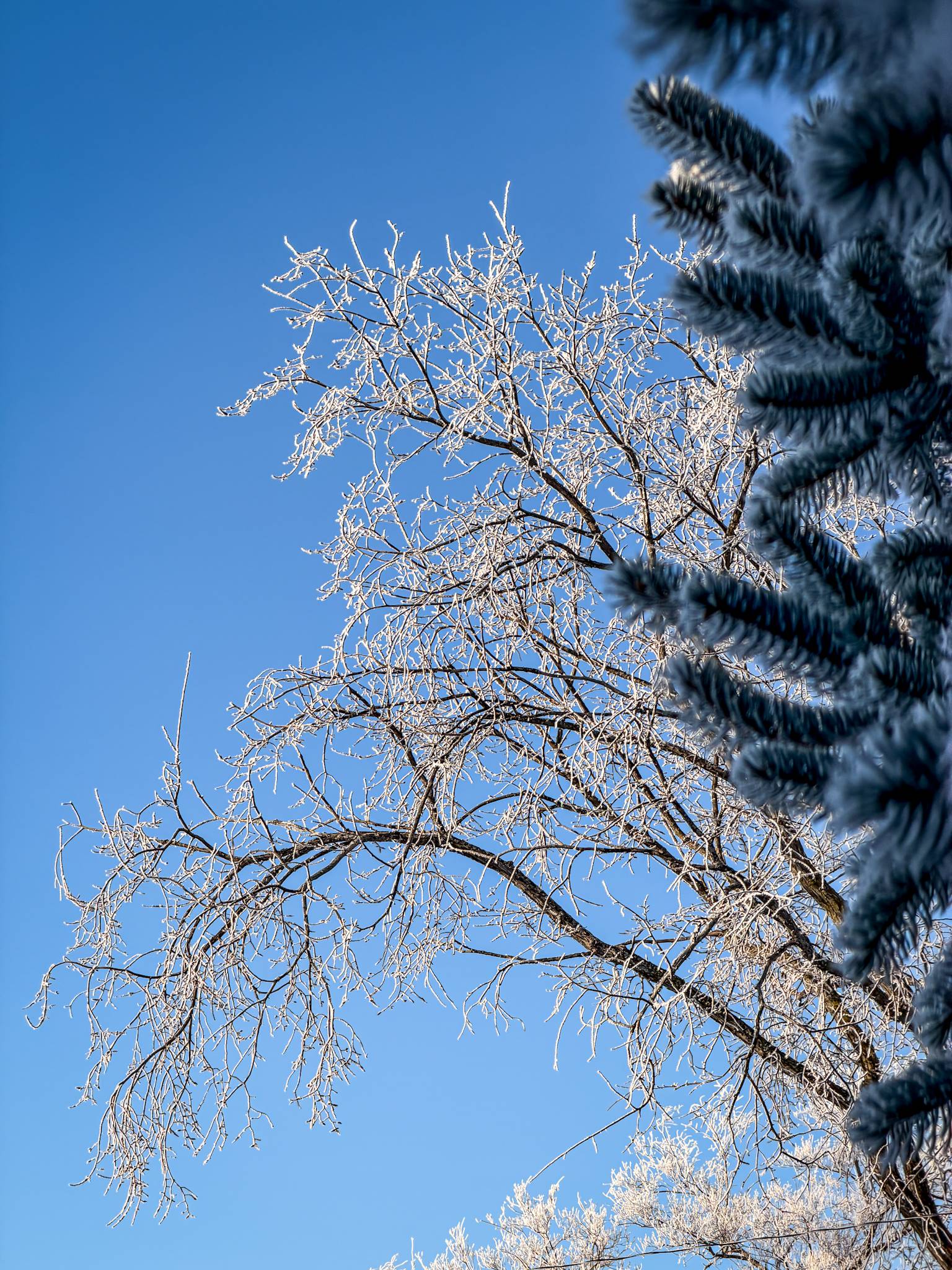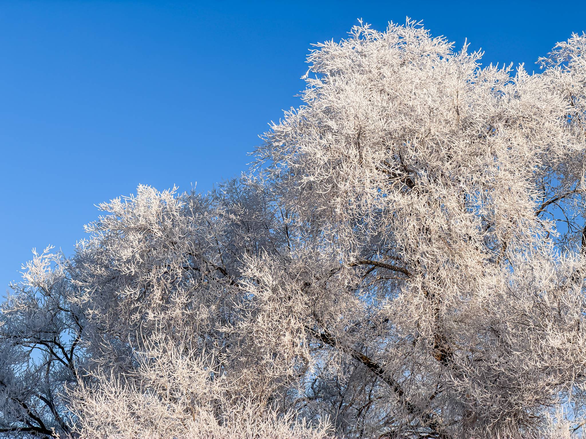 That's what I did last week. Our city was blanketed with an incredible frost on the trees, and with a clear blue morning sky, the lighting conditions were perfect for taking photos.